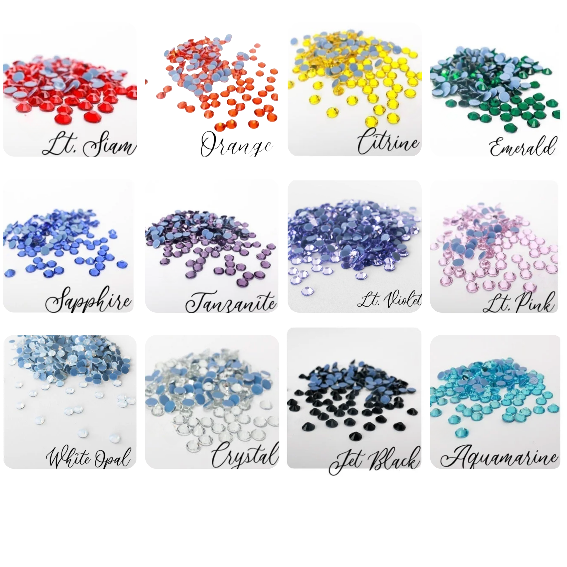 Rhinestones - Dimensional, faceted, and full of bling power. Each stone catches the light at multiple angles for that eye-catching shimmer.